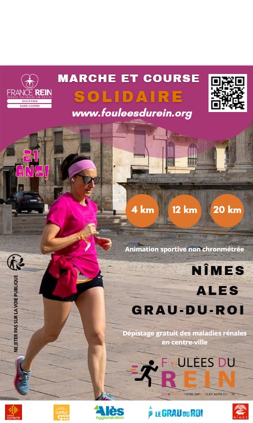 Les Foulées du Rein sont une animation sportive modérée, accessible à tous, loin du chronomètre, du marcheur au coureur, pour impliquer dans la prévention des maladies rénales. Ces opérations de dépistage en centres-villes ont pour vocation de sensibiliser sur l’activité physique quotidienne et la nutrition pour la santé rénale.